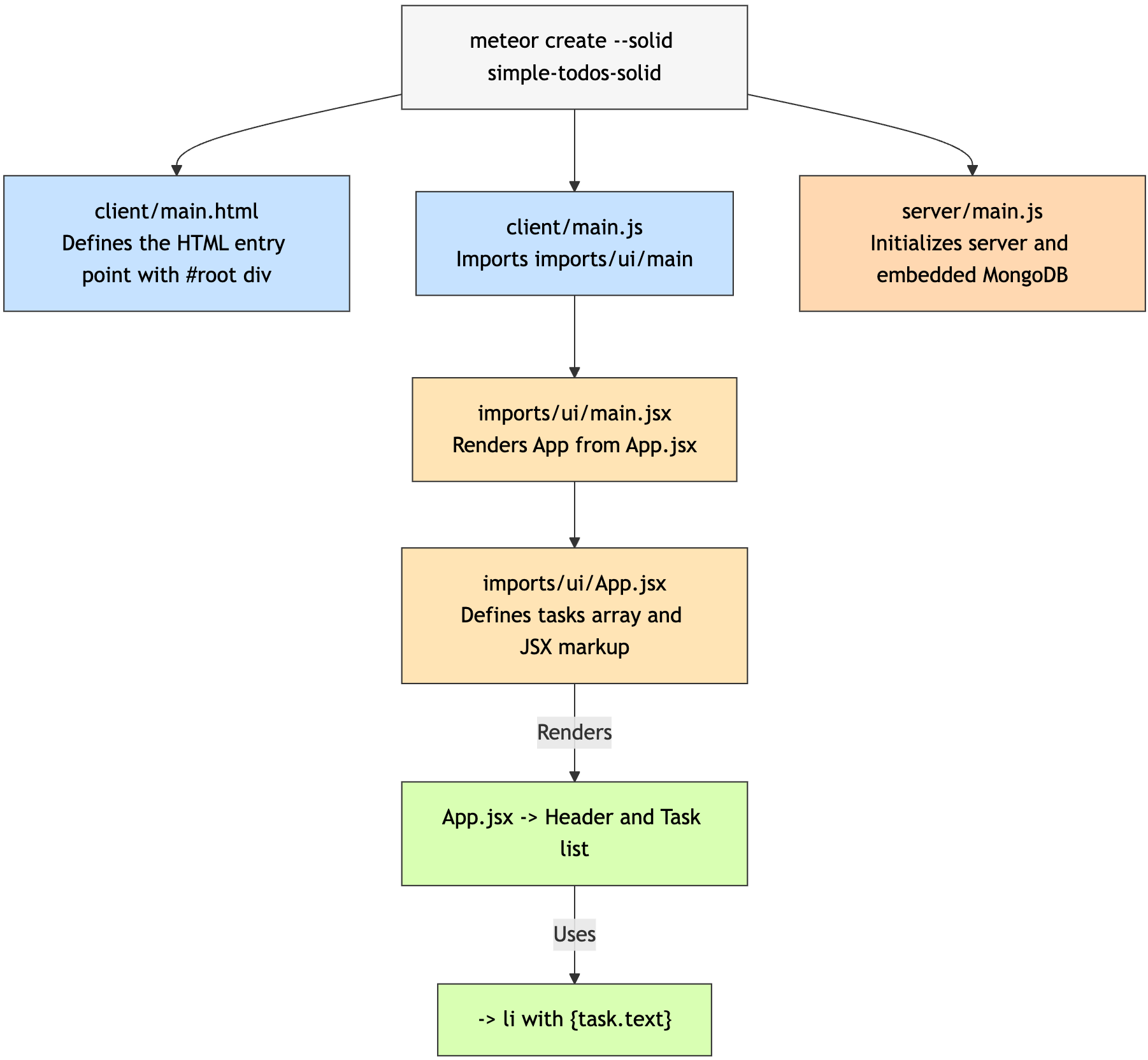 ¥The imports/ui/main.jsx file should import and render the main Solid component (note: this is referenced via client/main.js which imports it):